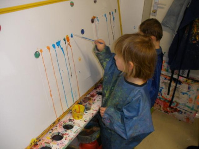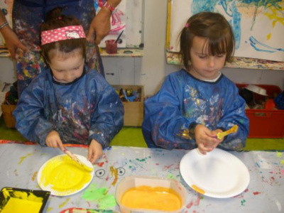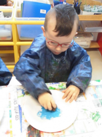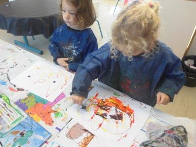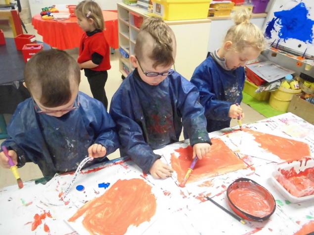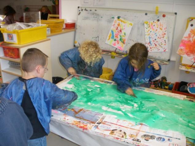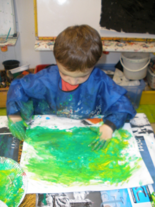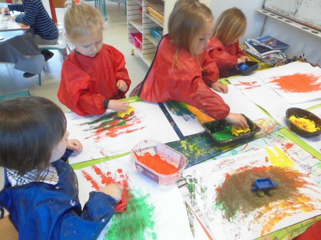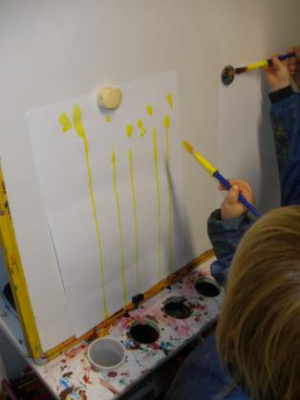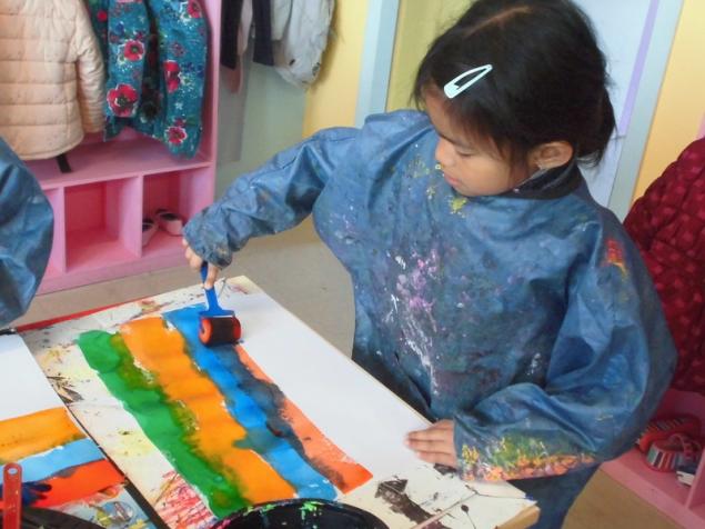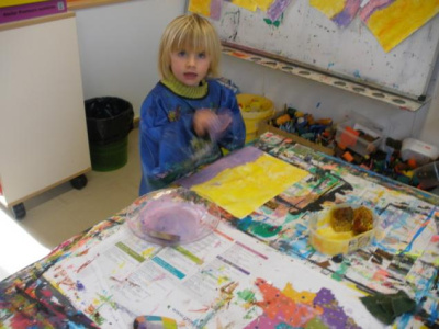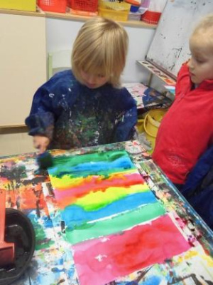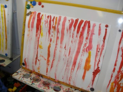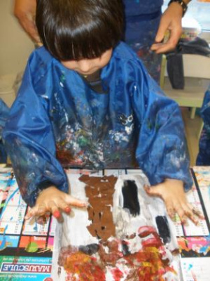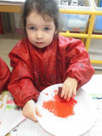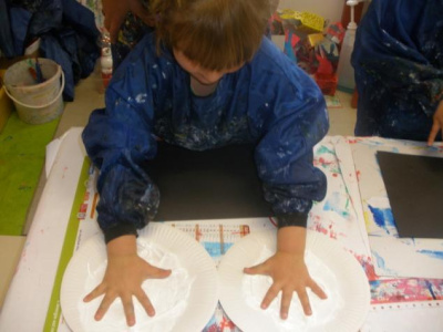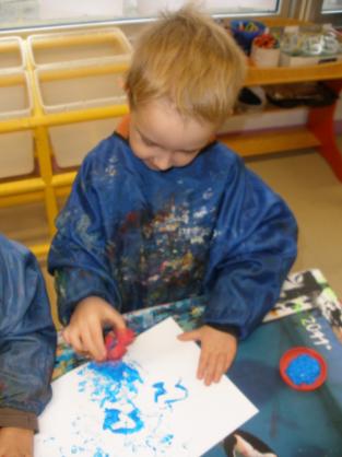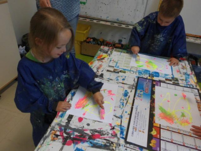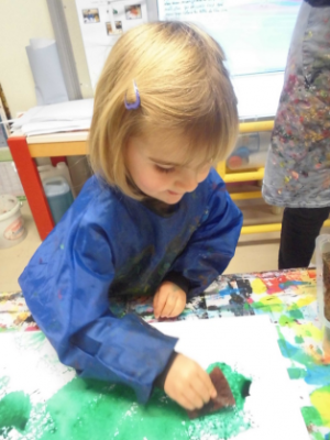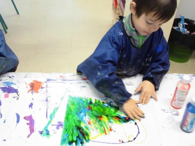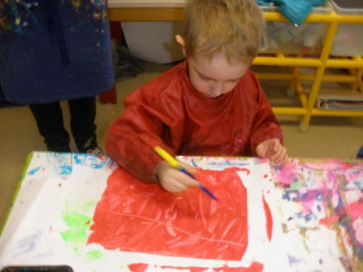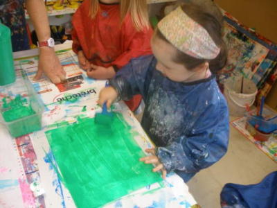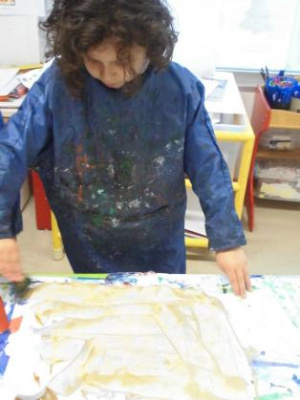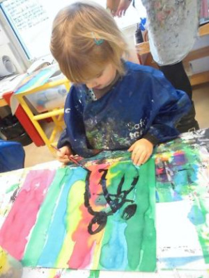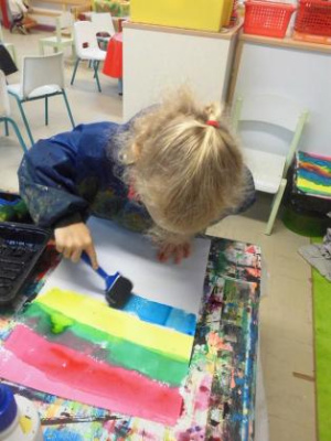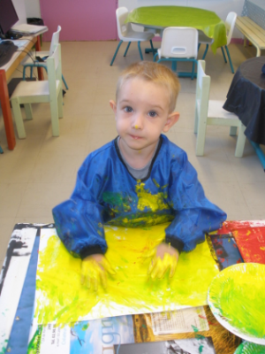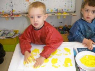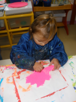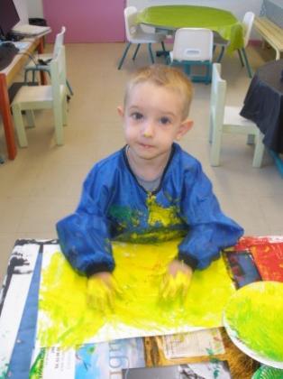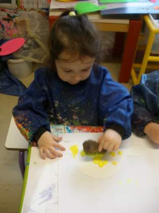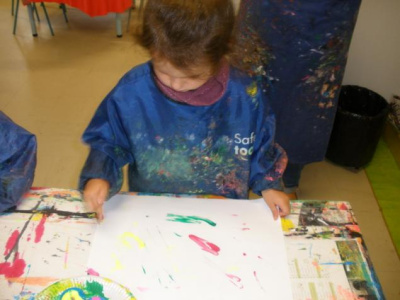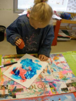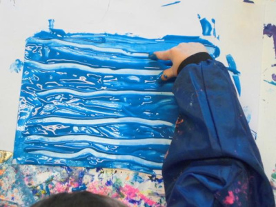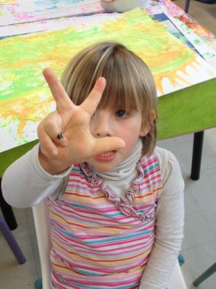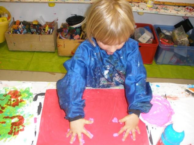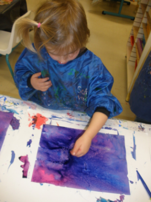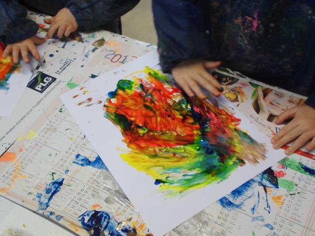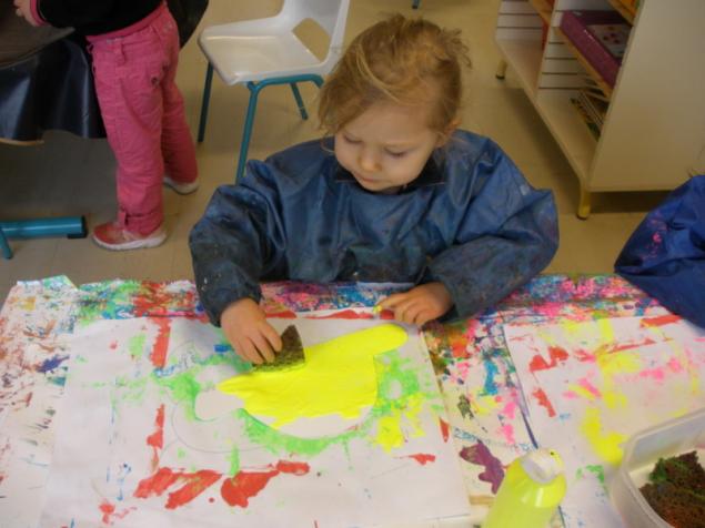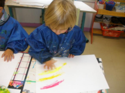 Peindre un fond coloré avec ses doigts.