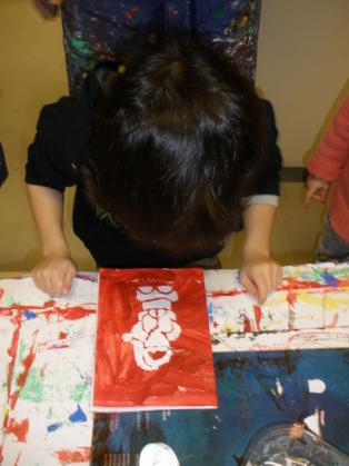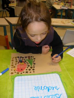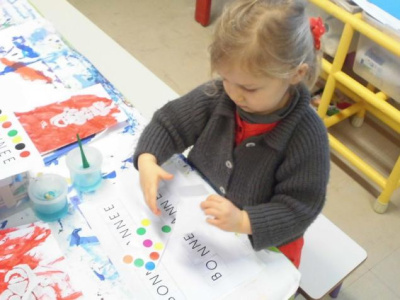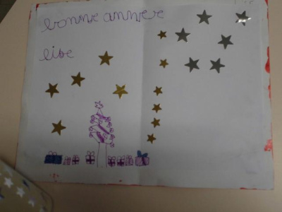 - Réaliser une carte de Bonne Année à la peinture et au pinceau et laisser une trace en utilisant un pochoir.