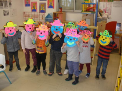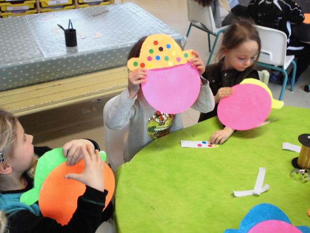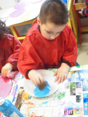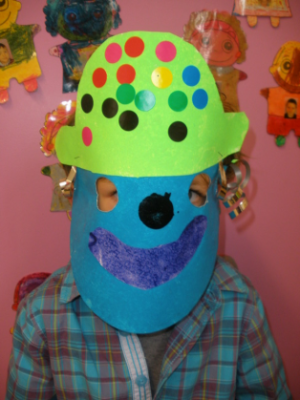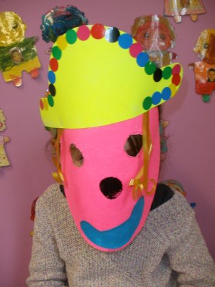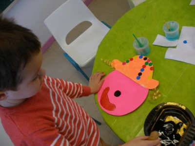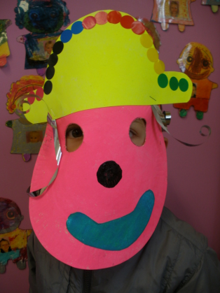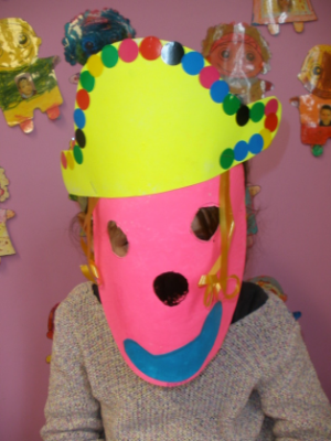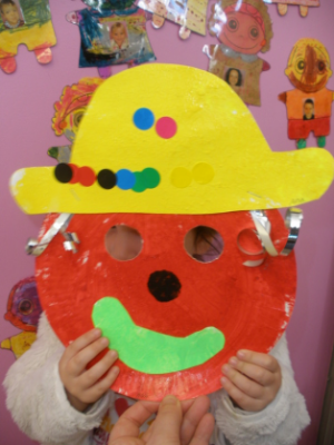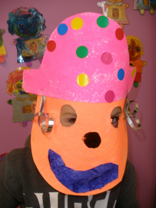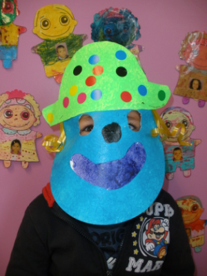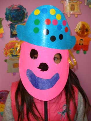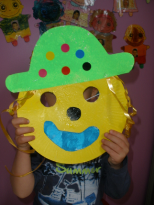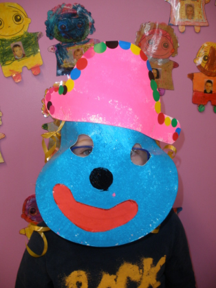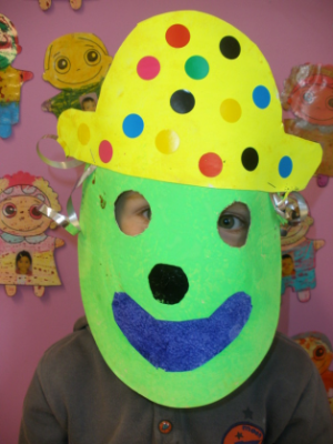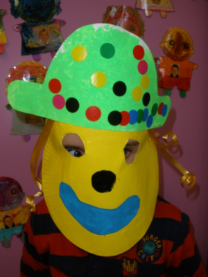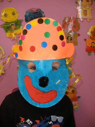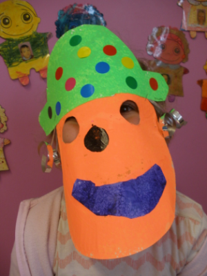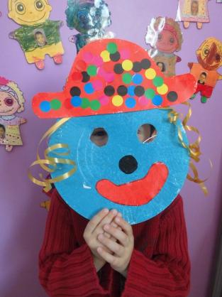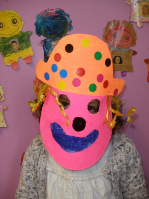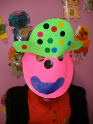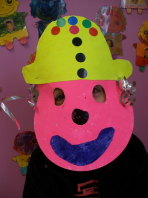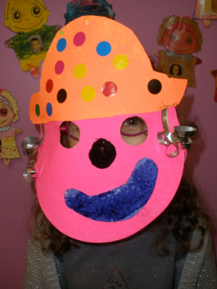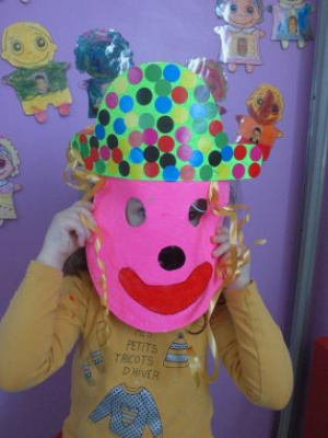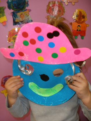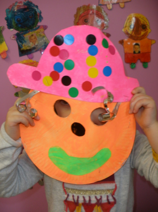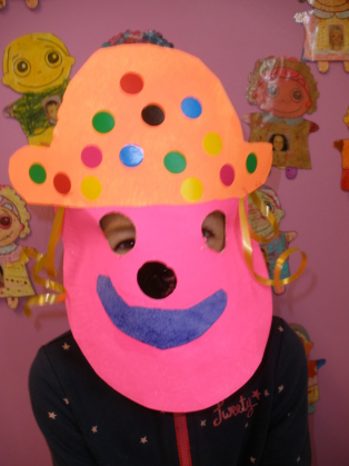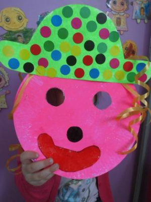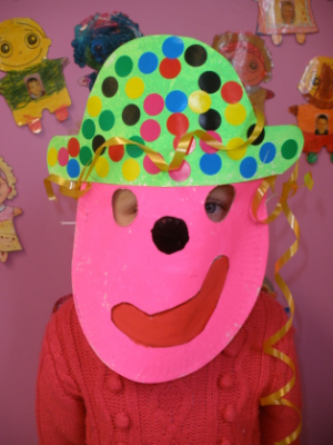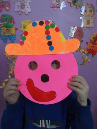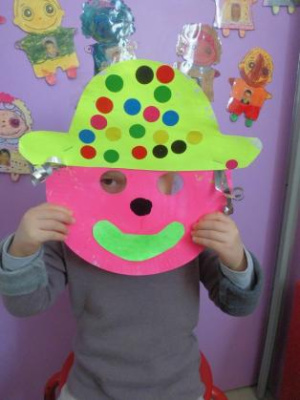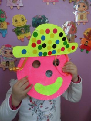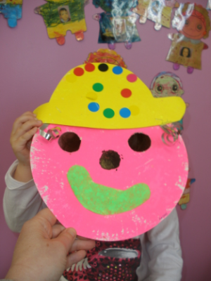 - Réaliser un masque de clown à la peinture avec une assiette en carton.