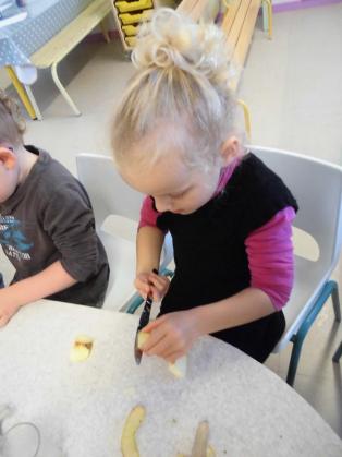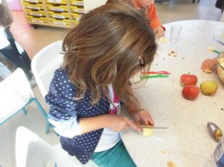 - couper les pommes avec le couteau