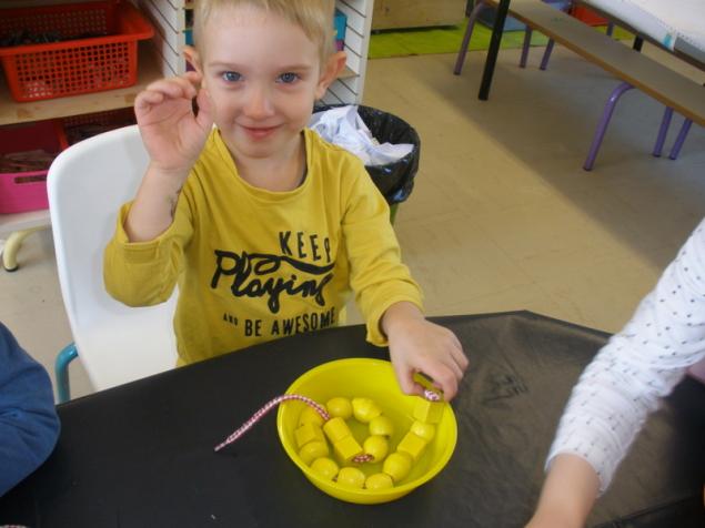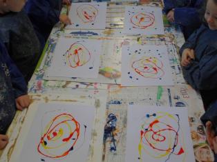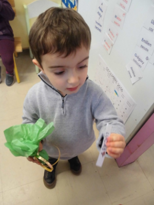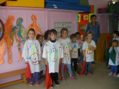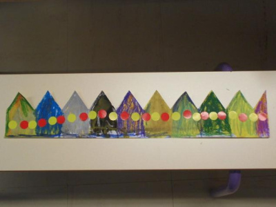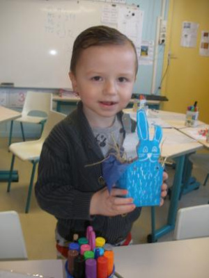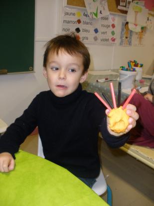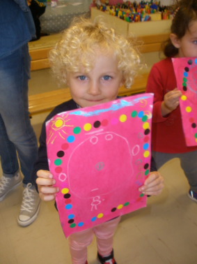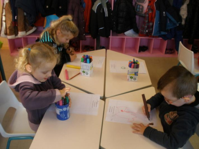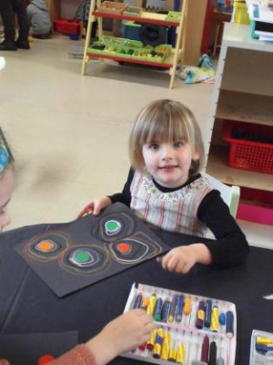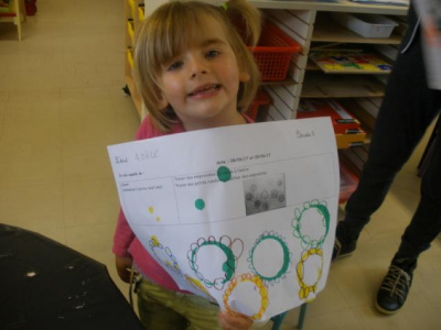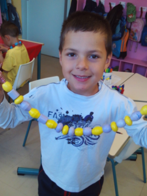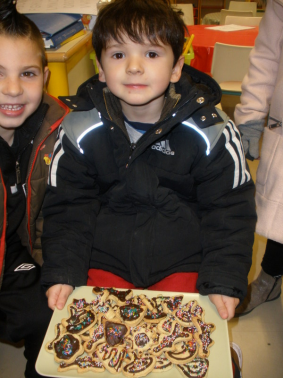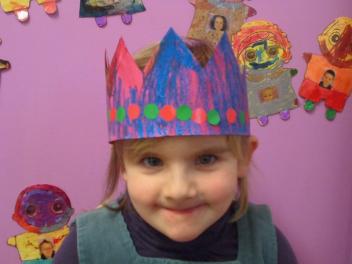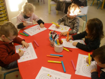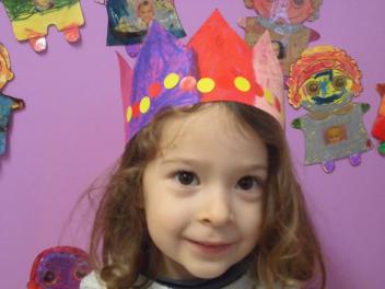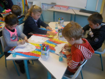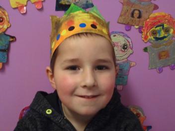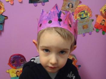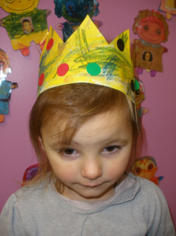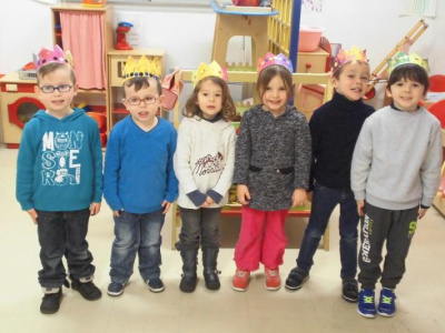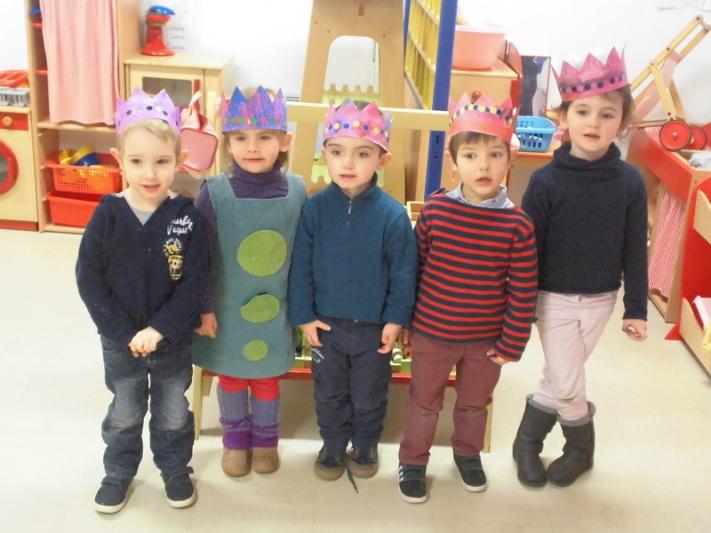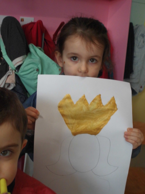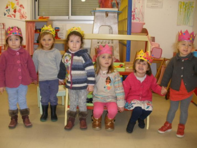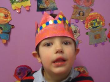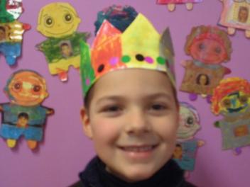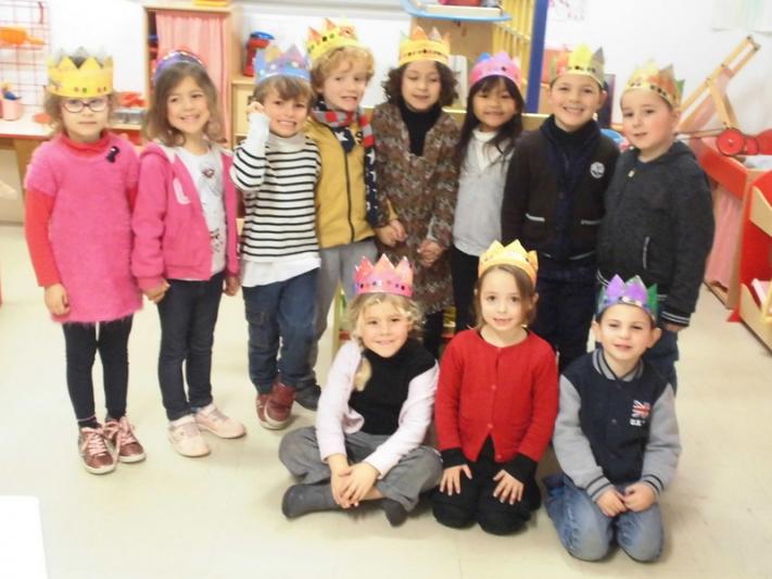 Au mois de janvier, nous avons confectionné de jolies couronnes avec l’aide de Manon. Les plus grands ont utilisé un gabarit, les plus petits ont décoré la couronne avec des craies, de l’encre et des gommettes.Voici le résultat…