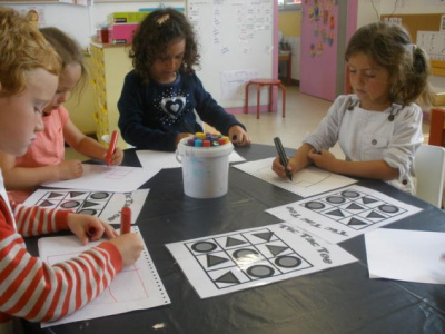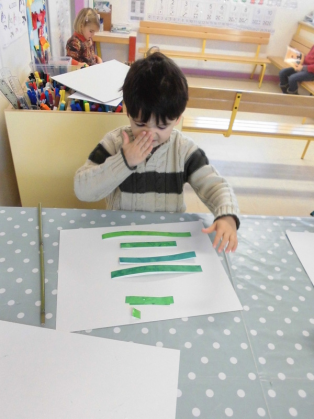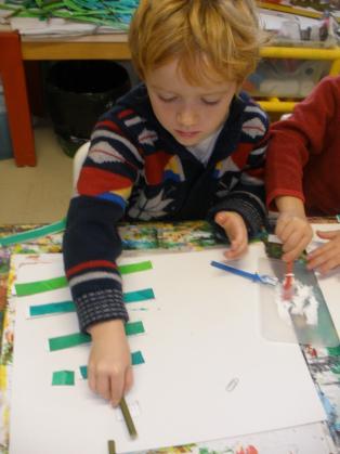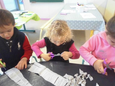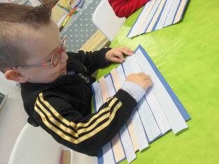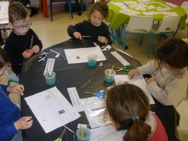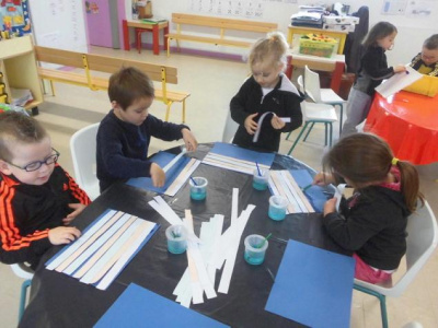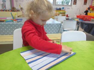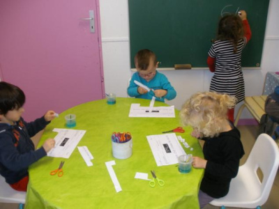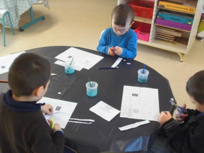 - découper et coller des bandes à l’aide de gabarit pour les plus grands