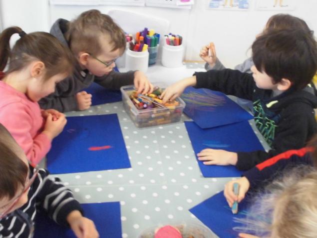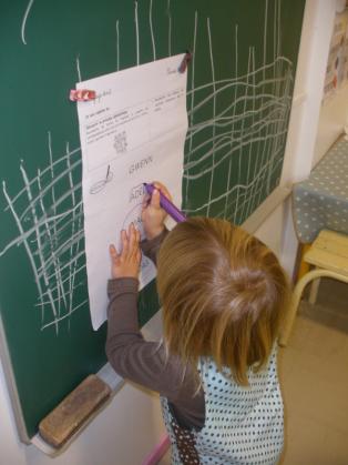 - Gribouiller à la craie sur un papier de couleur