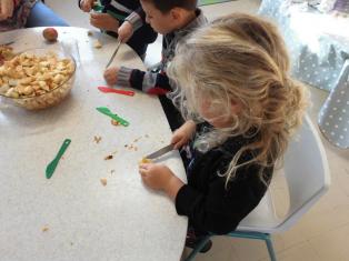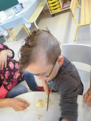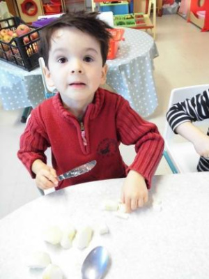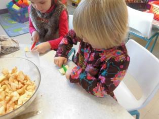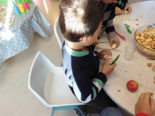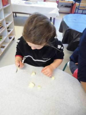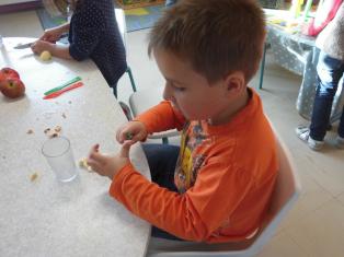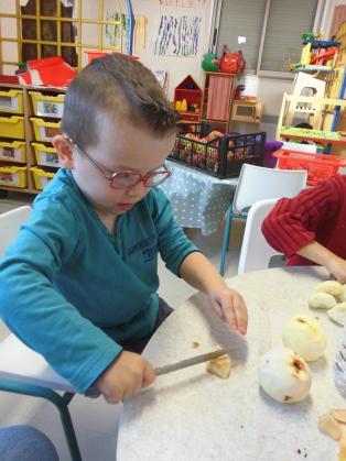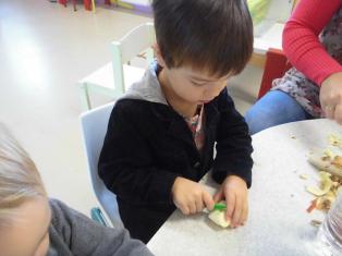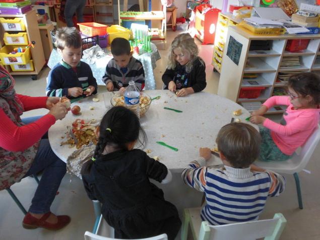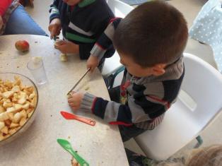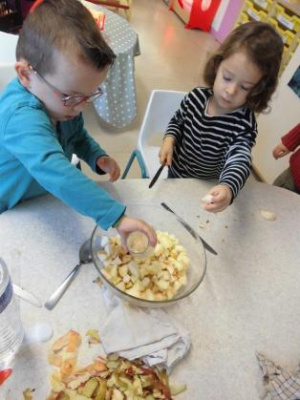 Aujourd’hui, nous avons préparé la compote avec des pommes apportées par Emilien. Merci !!