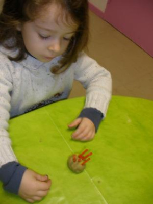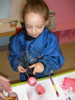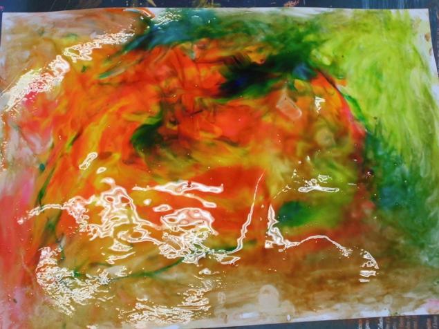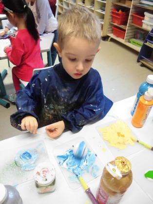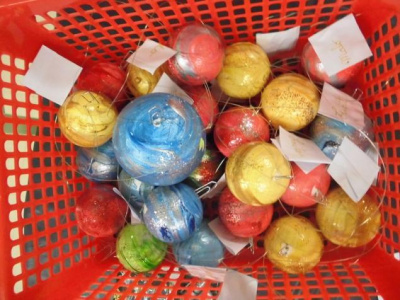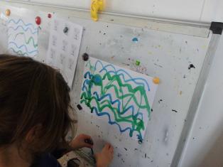 - la marbrure : faire rouler la boule polystyrène dans la peinture, à plat.