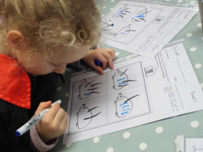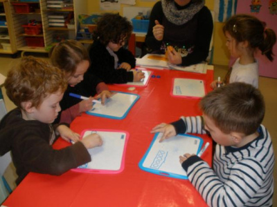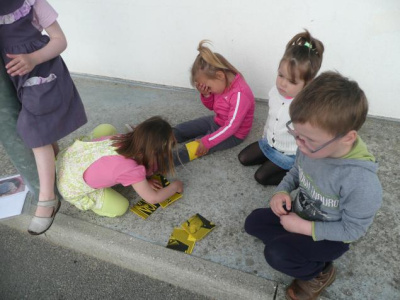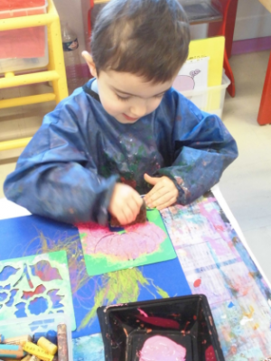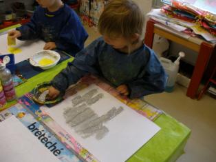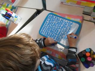 Pour les petits, laisser une trace en utilisant le pochoir
