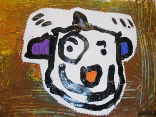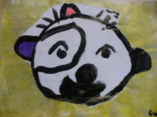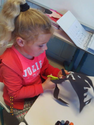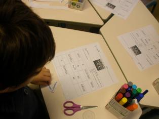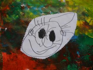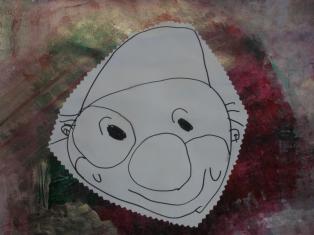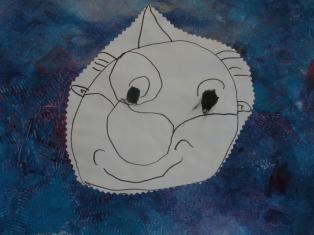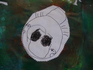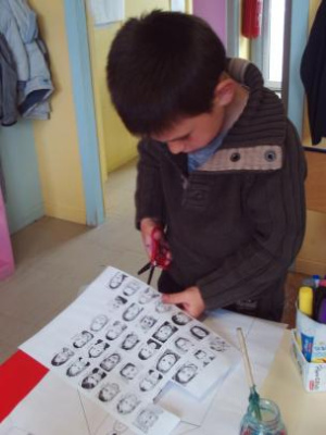 Dessin du visage et découpage pour coller sur le portrait.