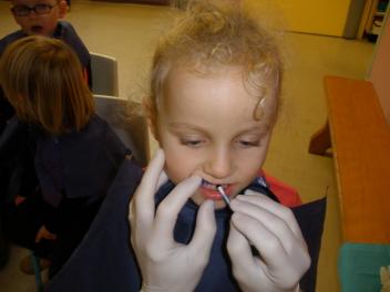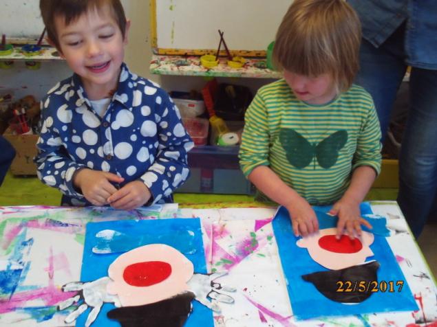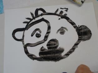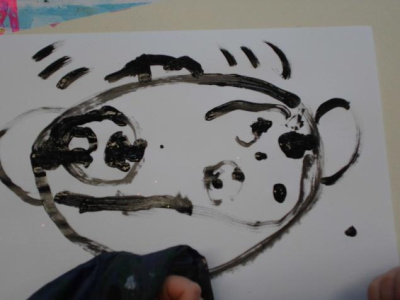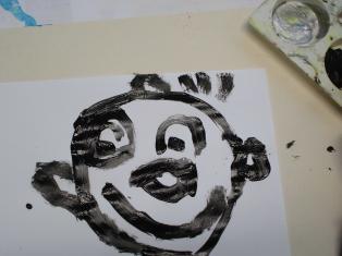 - Coller la bouche, peindre le nez au bouchon