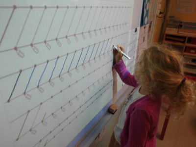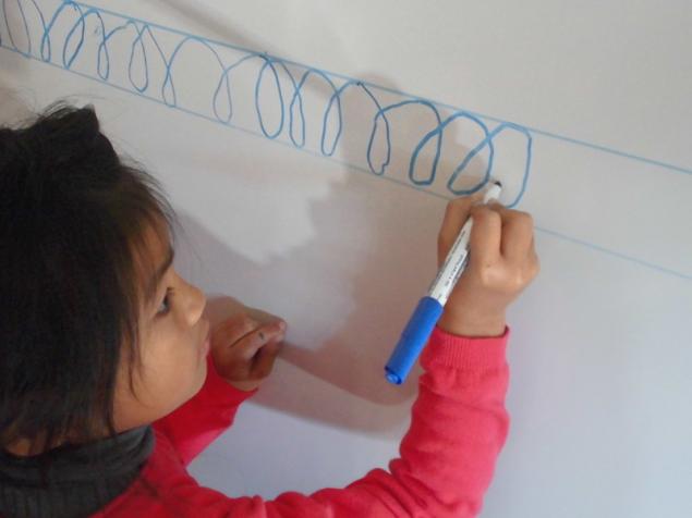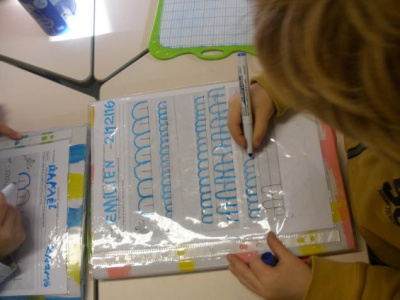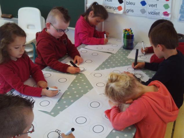 - Tracer des boucles à l’endroit au feutre noir