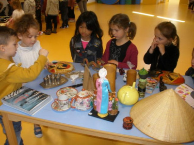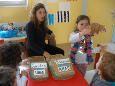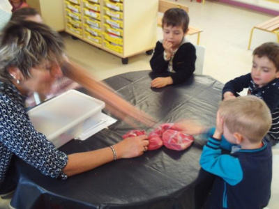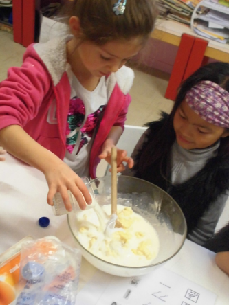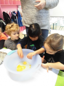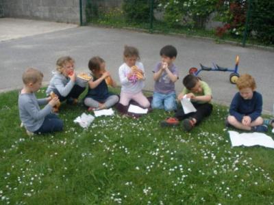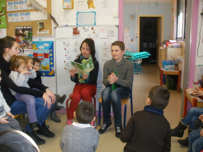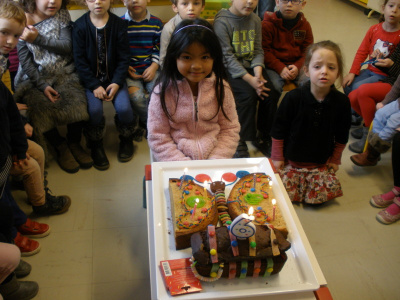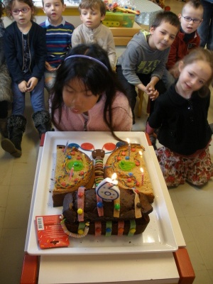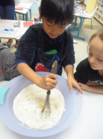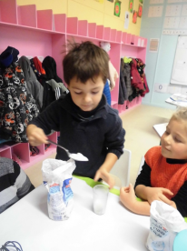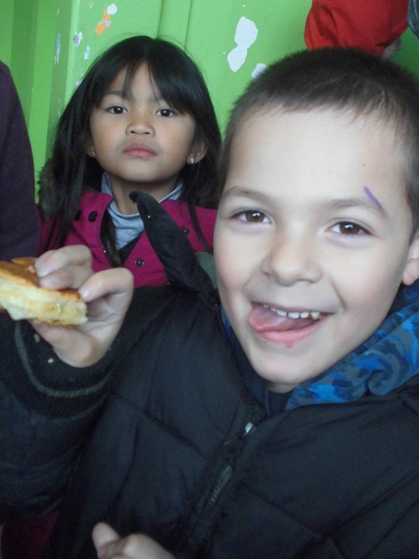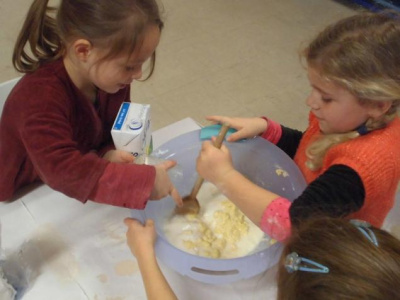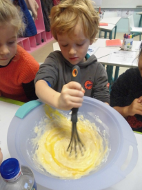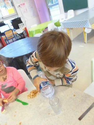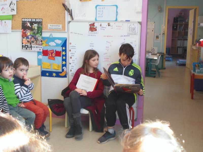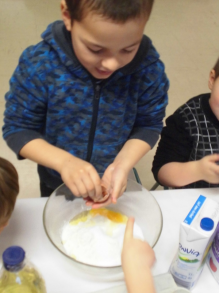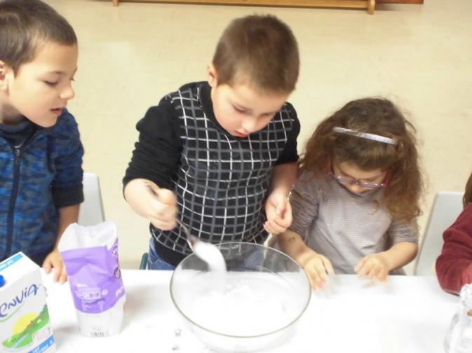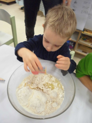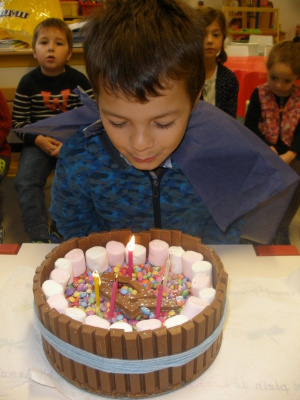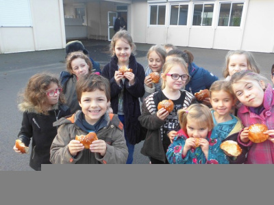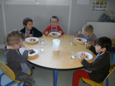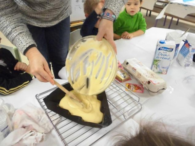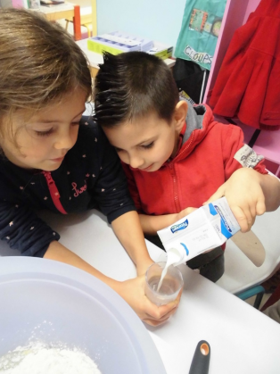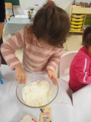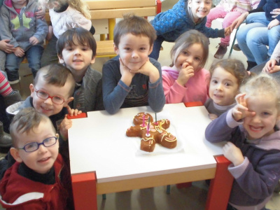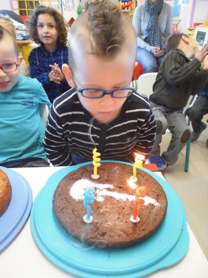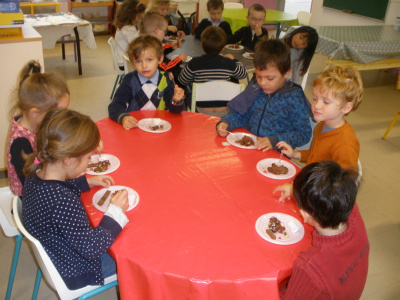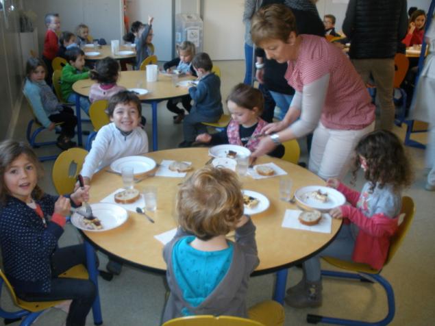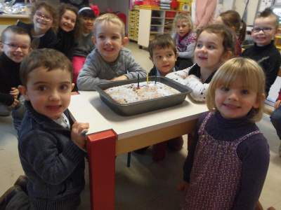 Mardi, les grandes sections ont préparé la pâte à crêpes. Dominique et Stéphanie ont ensuite cuit les crêpes sur la bilig. Et l’après-midi, tous les élèves ont pris un goûter avec en plus les galettes préparées par la classe de Catherine. Dans notre classe, c’est Rafaël le roi !!