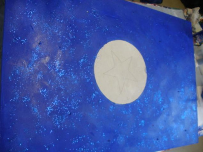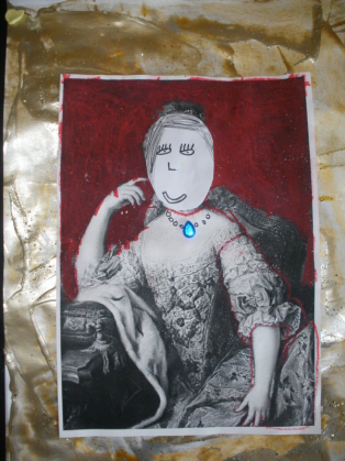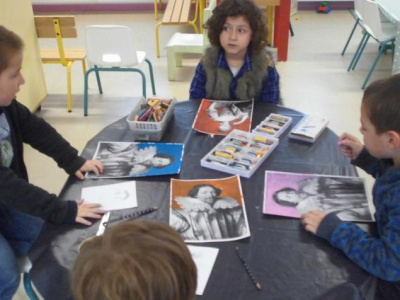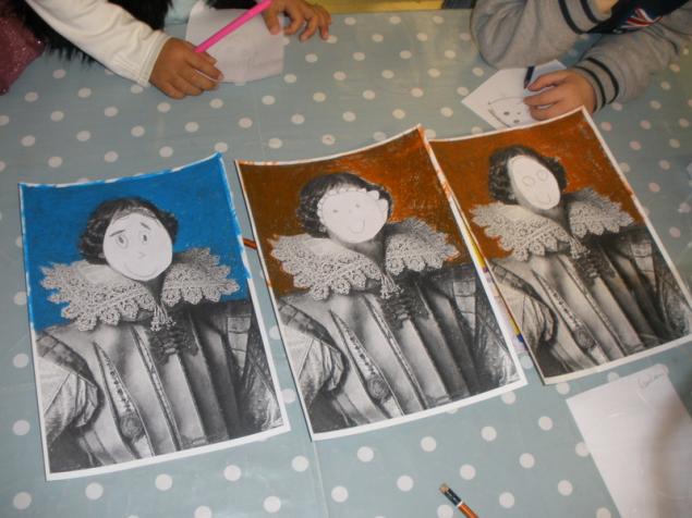Coloriage à la craie autour du portrait.