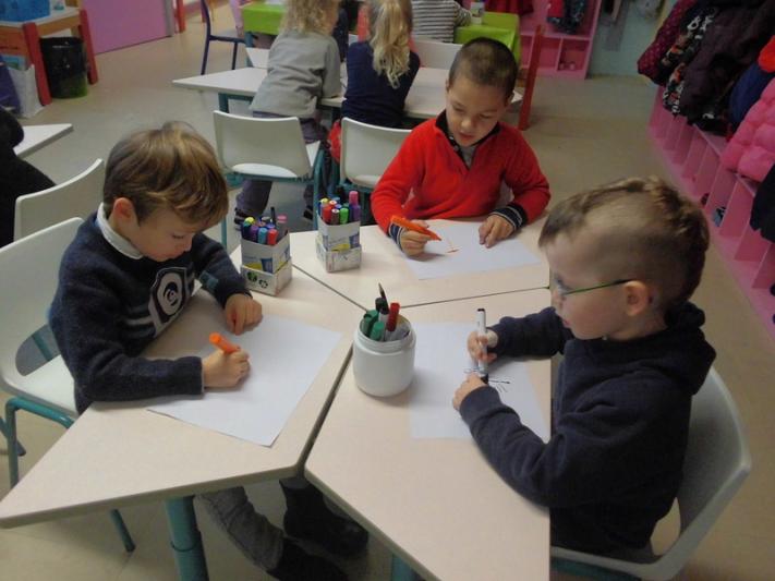 Les élèves de GS et MS ont observé la tête et ont dessiné ce qu’ils voyaient en détaillant les éléments constitutifs du visage.