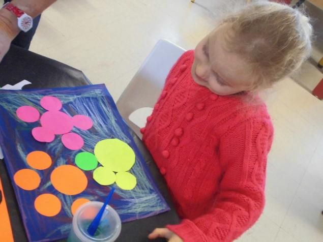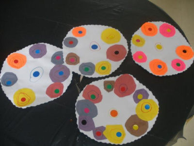 Découper et coller des ronds pour réaliser des fleurs.