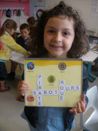 2) Déplacer la lettre demandée par le robot dans la case rose.