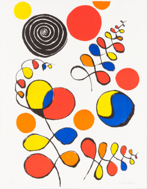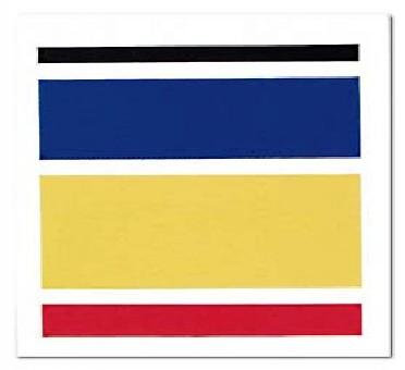 Collage de ronds et de bandes découpés dans des revues. + Papier aluminium.