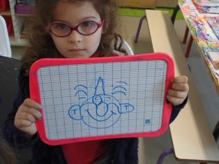 - Dessiner un clown sur l’ardoise avant de le dessiner sur une feuille au crayon noir ou au feutre.