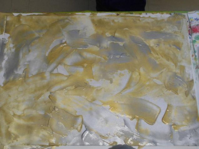 - Fond à la peinture dorée et argentée à la spatule
